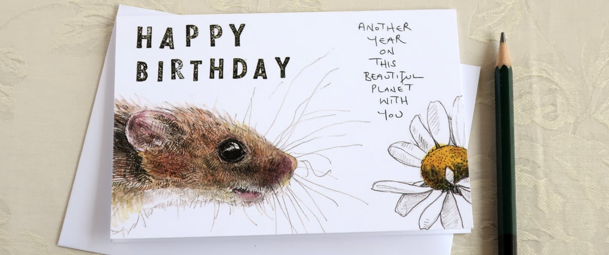 人生をより良いものにしてくれる人やまた一年この地球で暮らすことを幸せに思う人へ贈るバースデーカードです。 心からの感謝 ― あなたの仲間や人生そのものへ感謝の気持ちを表しました。 デイジーの香りをかいでいるとってもかわいいカヤネズミです! ハナさんが、ご自身の誕生日にこのバースデーカードを新たにデザインしました。 Another Year On This Beautiful Planet With You また一年あなたと一緒にこの美しい地球で ●アーティスト ハナ・ロングミュア ●カードの大きさ 縦14.8cm×横10.5cm、封筒1枚付き ●イギリス、スコットランド製 ●イラスト作成から印刷まですべて手作業で作っています ●プラスティック袋削減のため個包装していません。ご了承ください ABOUT OUR PAPER GOODS ハナさんの全商品は、デザインから作製、パッケージングまですべて手作業で行っています。 環境保全の点から見て適切で、社会的な利益に適い、経済も継続可能な、責任ある管理をされた森林や、林産物の責任ある調達に対して与えられるFSC認証を受けたカードにプリントしています。 オリジナル作品は、鉛筆と水彩で描いています。 デザインはイギリスの自然豊かなカントリーサイドからインスパイア―を得ています。 ハナさんは、みんなが野原や生け垣、森林など身近な自然にふれあうことはとても大切なことだと思っています。 カントリーサイドの自然を愛し、楽しむことが、守っていくことにつながっています。 みなさんがカードを送るとき、相手に”あなたは大切な人だ”という思いとともにメッセージを書く、とても素敵だ。 カードがポストからトラック、飛行機、自転車などを伝って相手先のポストに届くまでの旅路を想像するだけでワクワクします。 カードをどなたの特別な日に贈る予定ですか? ハナさんのカードがみなさまのお役に立つことができれば幸いです。