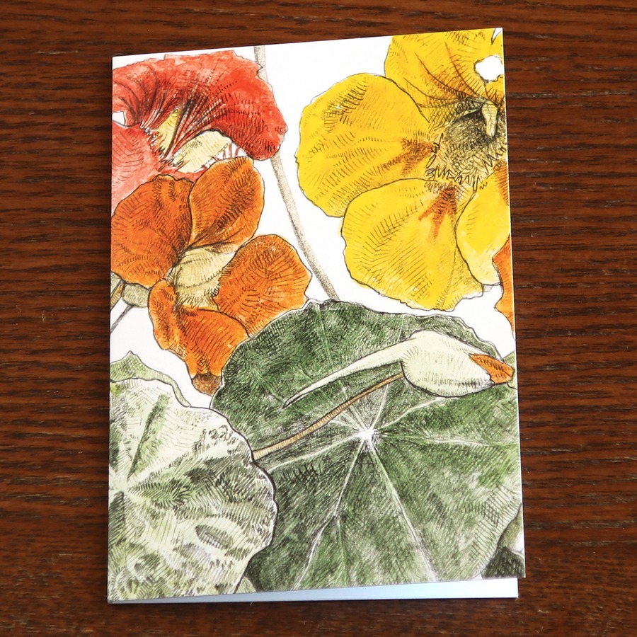 美しいオレンジ、赤、黄色と多様な色の花をつけ、大きめの丸く平らな葉をつけます。
