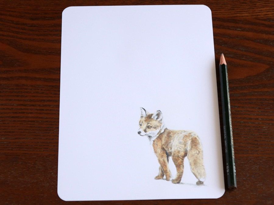 みずみずしいタッチで描かれた好奇心いっぱいの子キツネ。