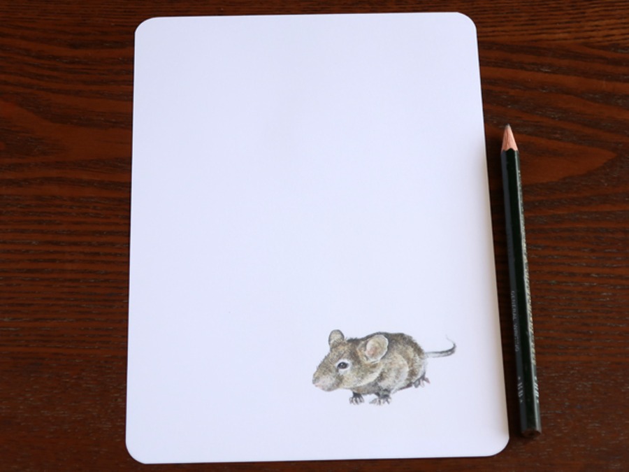 ペンのすべりが良い上質な紙に、ハナさんのかわいらしい動物のイラストが上品です。