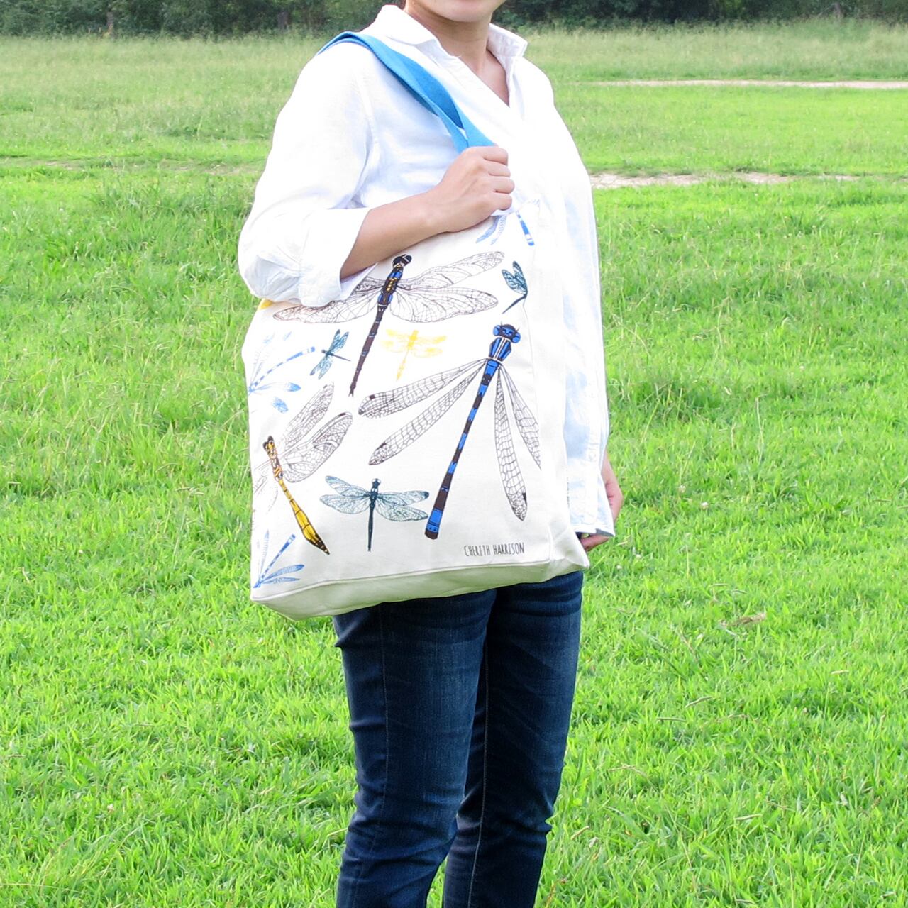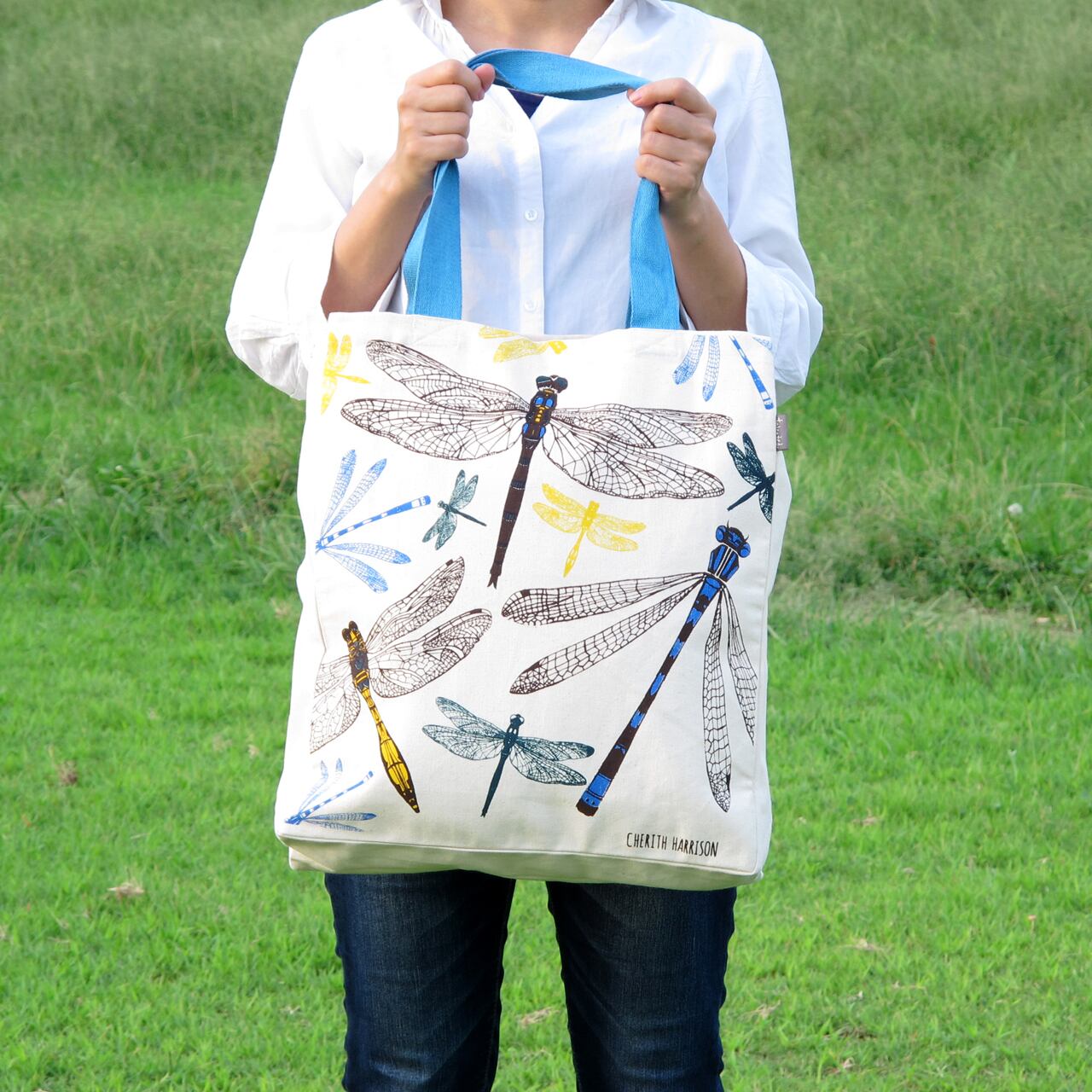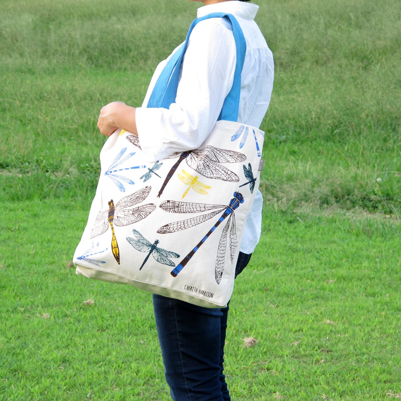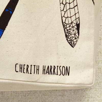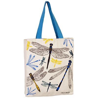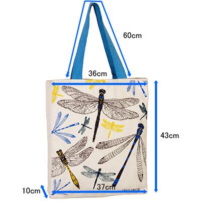 エメラルド・トンボとイトトンボをデザインしたゆったり、大きめのトートバッグです。