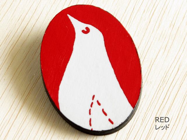 とり ブローチ 赤 木製