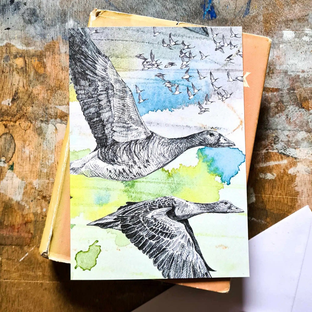 冬の使者 ガンの飛来 グリーティングカード(メール便可)